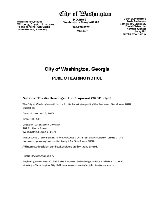 NOTICE OF PUBLIC HEARING ON THE PROPOSED 2026 BUDGET