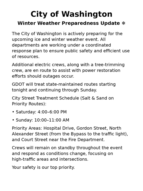 The City of Washington is proud to announce that it has been awarded the 2025 GMA/GMEBS Health & Wellness Grant. This grant recognizes the City’s ongoing commitment to fostering a healthy and positive workplace culture for all employees.