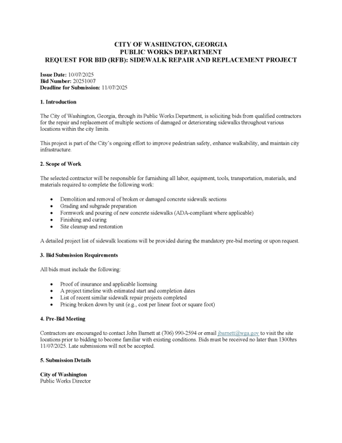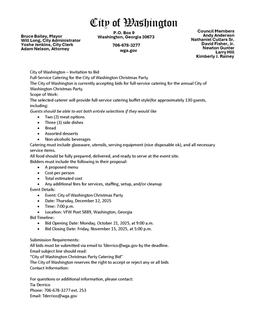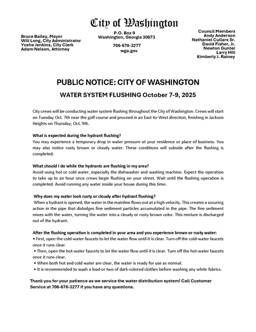 Please be advised that the City of Washington City Council Meeting is October 20th, 2025 at 6pm.