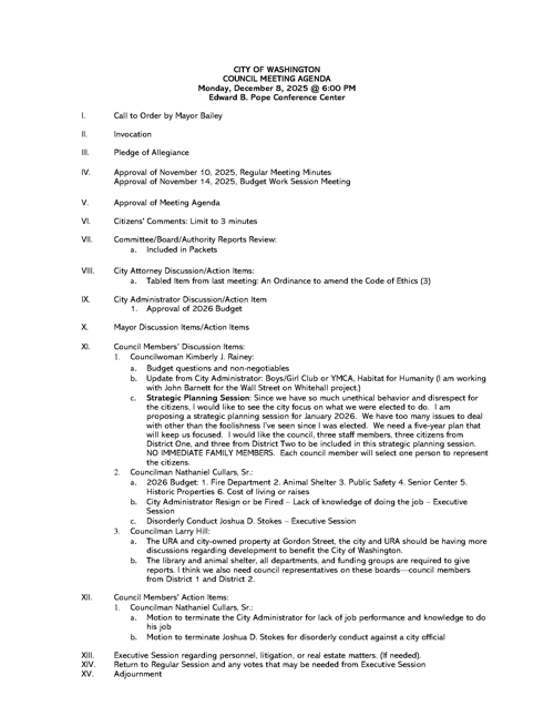 Please be advised that the City of Washington City Council Meeting is December 8th, 2025 at 6pm.